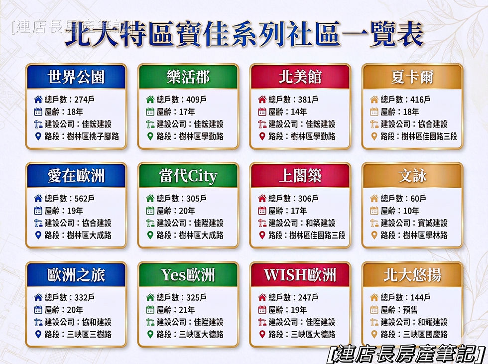 你知道嗎?寶佳在特區內共有 12 個社區(包含預售案北大悠揚),總戶數達 3,761 戶之多!這龐大的量體,不僅撐起了北大特區的居住人口,更是許多首購族和家庭客的熱門選擇。