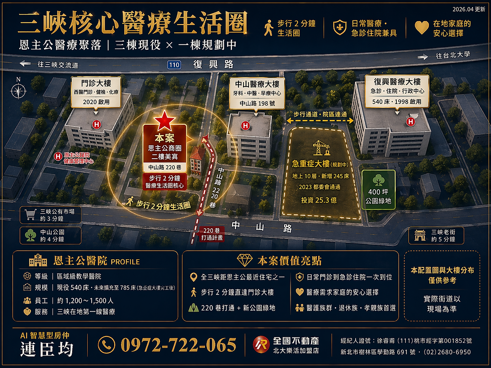 #三峽北大 #恩主公醫院 #急重症大樓 #三峽房市 #連店長 #在地經營 #誠實房仲 #我就住在這裡